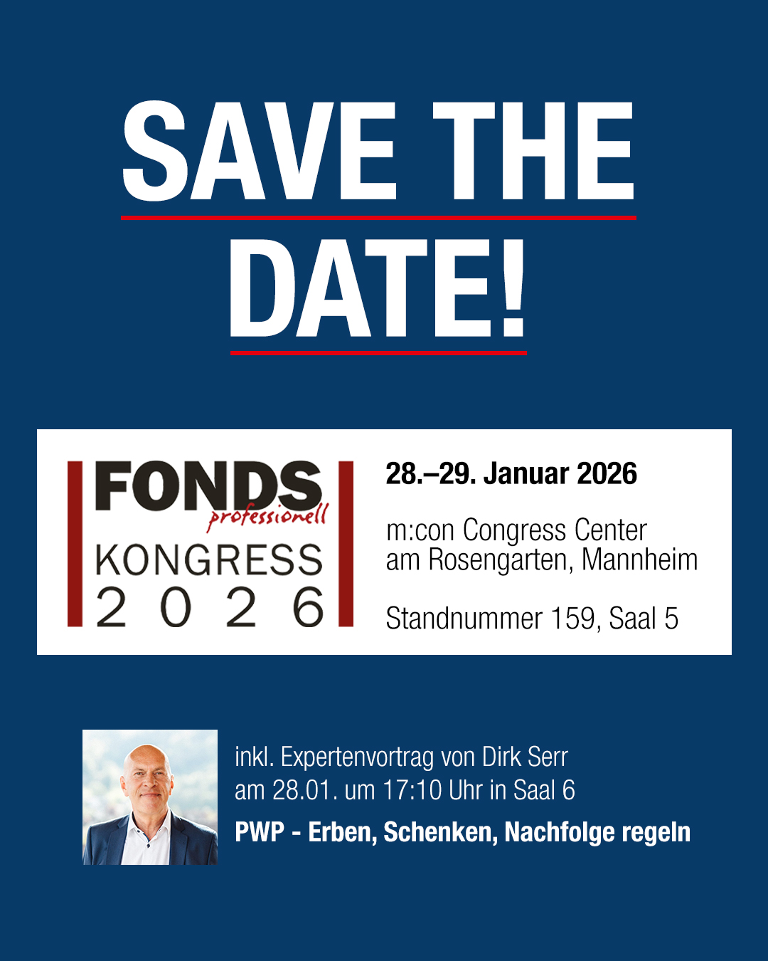 Am 28. und 29. Januar 2026 sind wir erstmals auf dem FONDS professionell KONGRESS in Mannheim vertreten. Damit setzen wir einen weiteren wichtigen Schritt im persönlichen Dialog mit unseren Vertriebspartnern und freuen uns auf zwei Tage voller Austausch, neuer Perspektiven und fachlicher Impulse.
